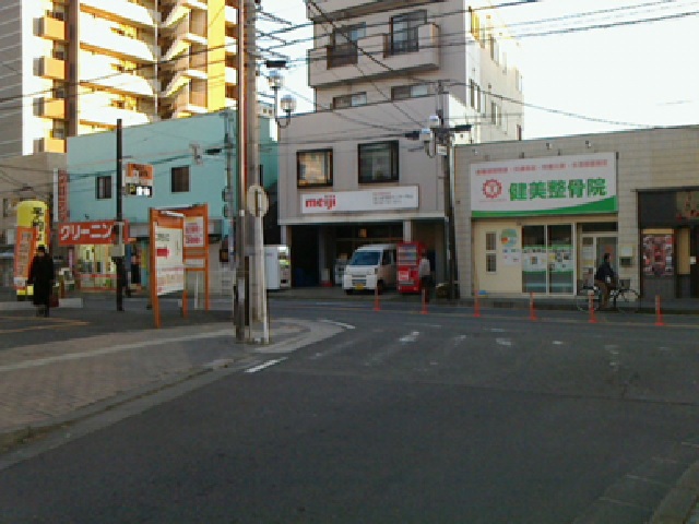 ① 「北小金駅」南口を出て左側の階段を降ります。道なりに進み、左手にある横断歩道を渡り、右折します。
