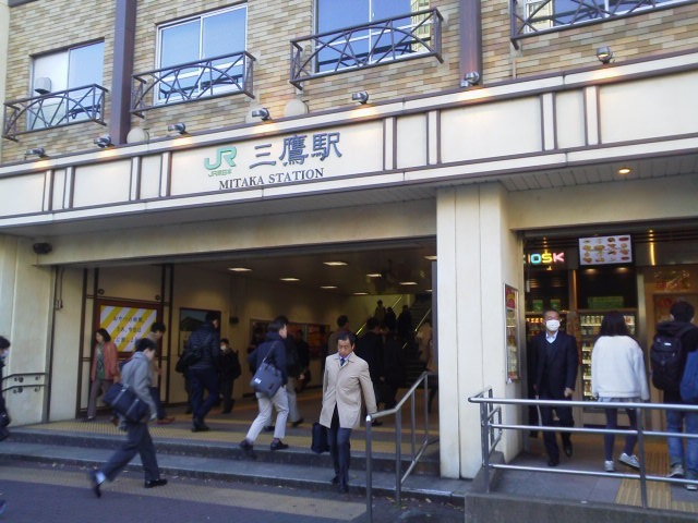 ① 三鷹駅「北口」を出て、線路沿いに左へ進みます。