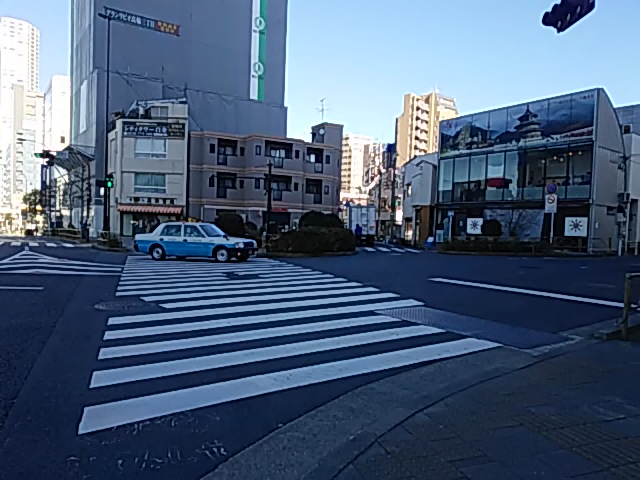 ② 1つ目の信号を渡り、右斜め方向の一方通行を進みます。
