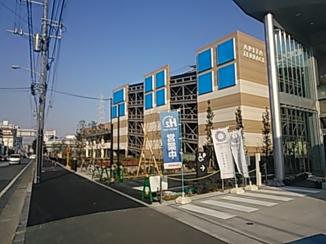 ③ 右手に商業施設が見え、水素ステーションと綱島アピタテラスの間の道を進みます。
