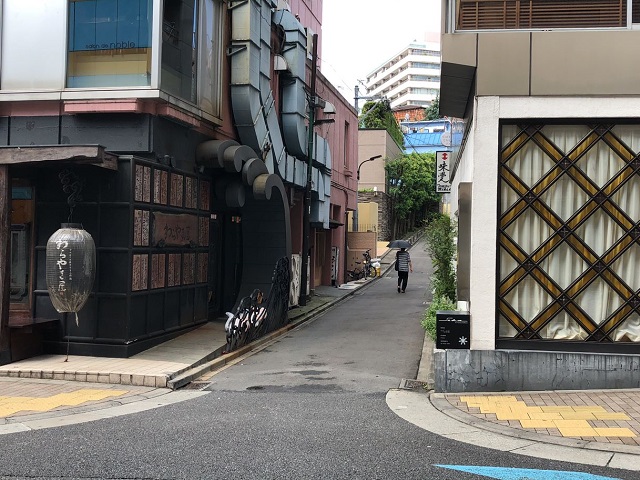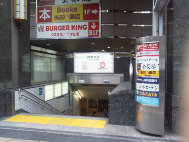 ① 「六本木駅」3番出口を出て右へ進み、1つ目の路地を右折します。
