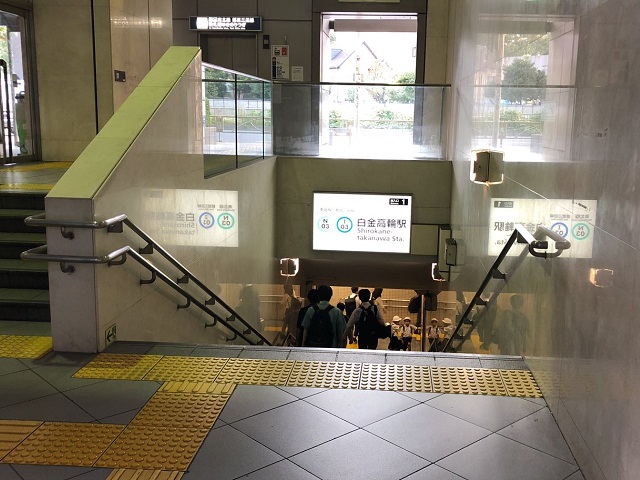 ① 「白金高輪駅」1番出口を出て右へ進み、区民ホール方面へ向かいます。