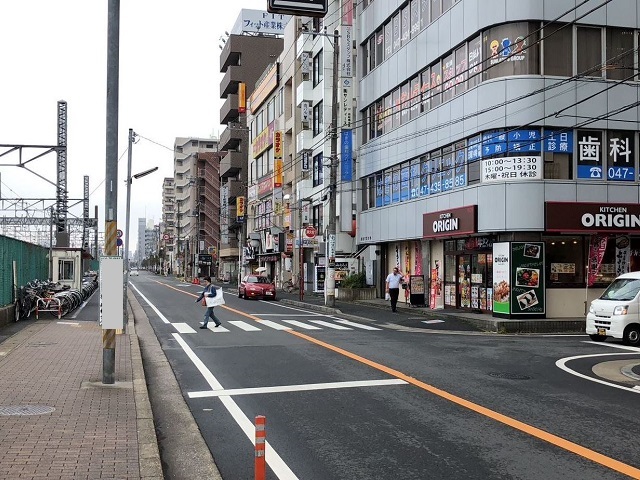 ① 「西船橋駅」南口を出て、線路に沿って千葉方面へ進みます。