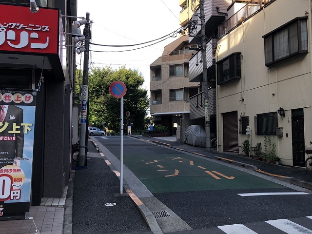 ② 1つ目の信号を過ぎ、次の路地を左へ曲がります。