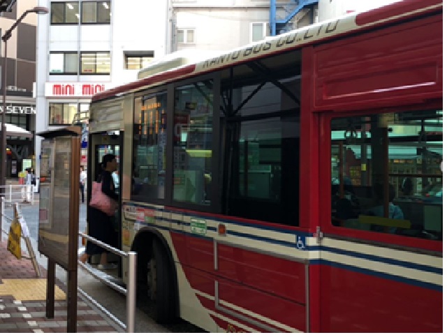 ① JR「荻窪駅」北口を出て、バスターミナルよりプロムナード荻窪行きのバスに乗車します。