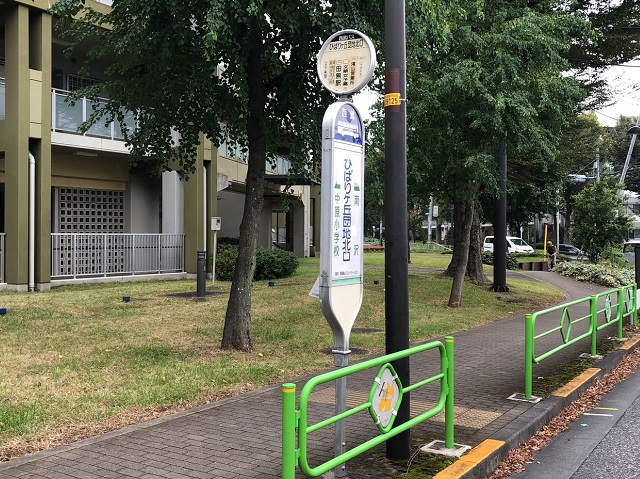 ① 「ひばりが丘駅」南口よりバス「境07/08/田44」を利用し「ひばりが丘団地北口」で降ります。
