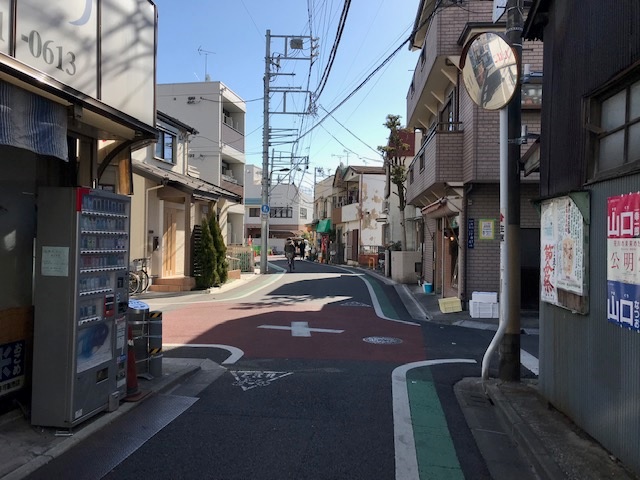 ① 千代田線「町屋駅」2番出口を出ます。京成「町屋駅」を越え、都電荒川線沿いを進み突き当りを右折。