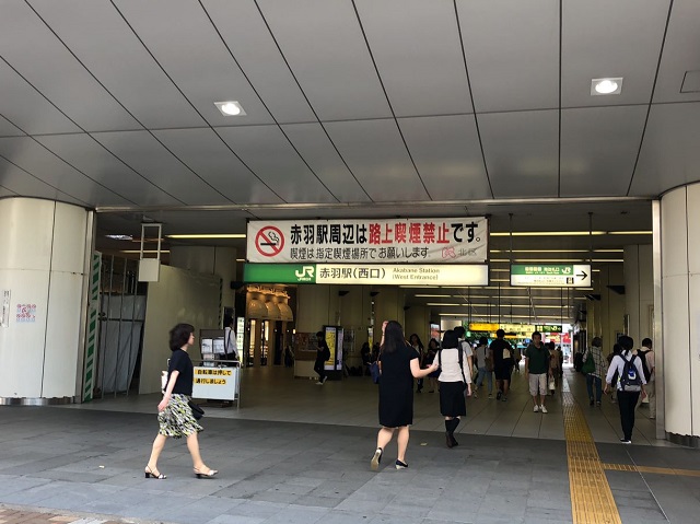 ① 「赤羽駅」西口を出てロータリーを左に回り、右斜め前方の道へ進みます。