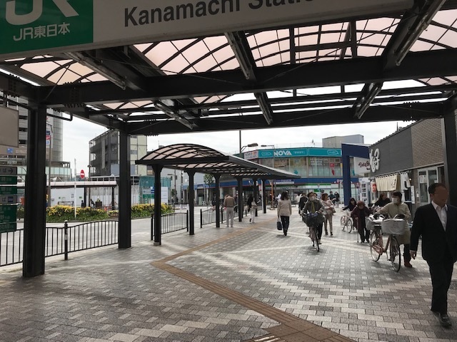 ① 「金町駅」南口を出てロータリーを右方向へ進みます。