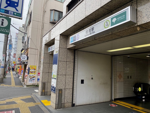 ① 「住吉駅」B1出口を出て、右に進みます。