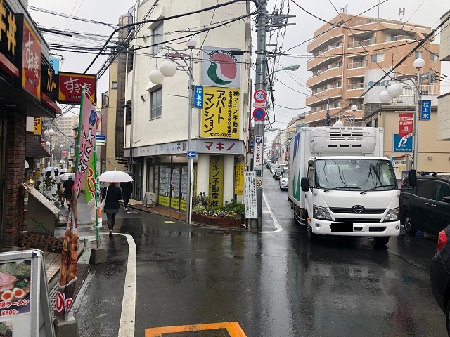 ② 突き当りを右折し、二又の路地を右方向へ進みます。