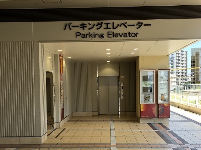 ② 「カフーナ旭橋」の外周を進むと、突き当たりにパーキングエレベーターがございます。