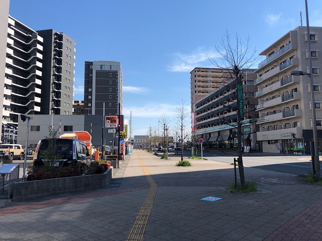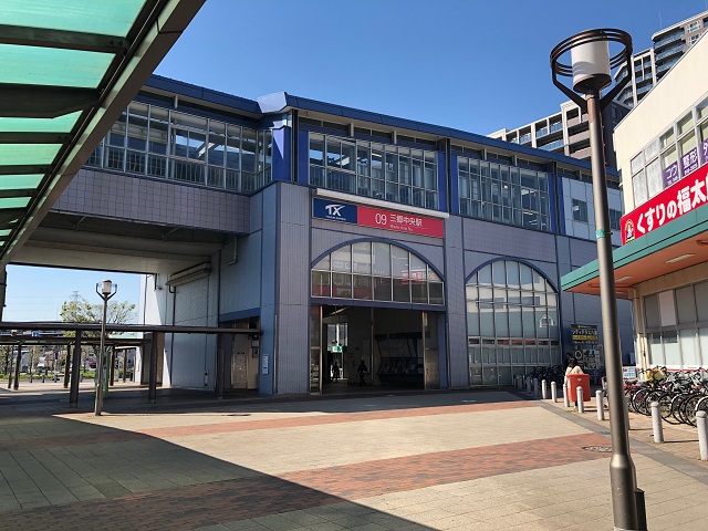 ① つくばエクスプレス「三郷中央駅」東出口を出てロータリー沿いに左へ進みます。