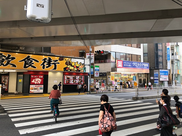 ① 「浦安駅」北口を出て、横断歩道を渡り右方向へ進みます。