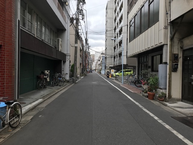 ② 3つ目の十字路を渡ってから左へ進み、更に1つ目の路地を右折します。