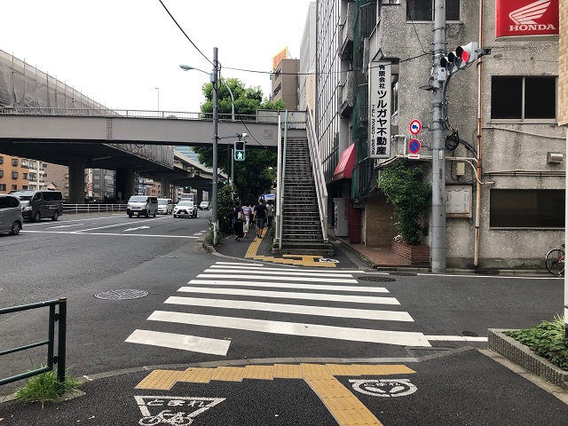 ② 2つ目の路地(歩道橋手前)を右に曲がります。