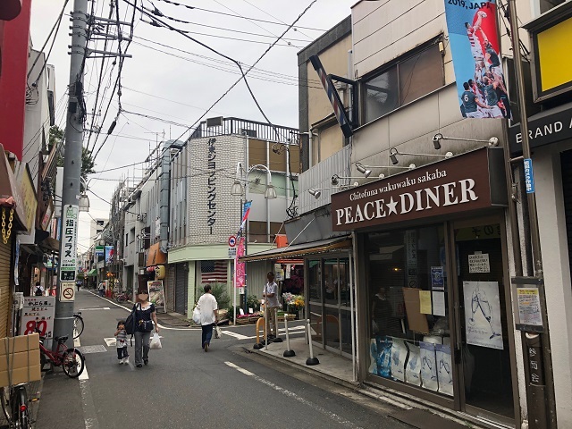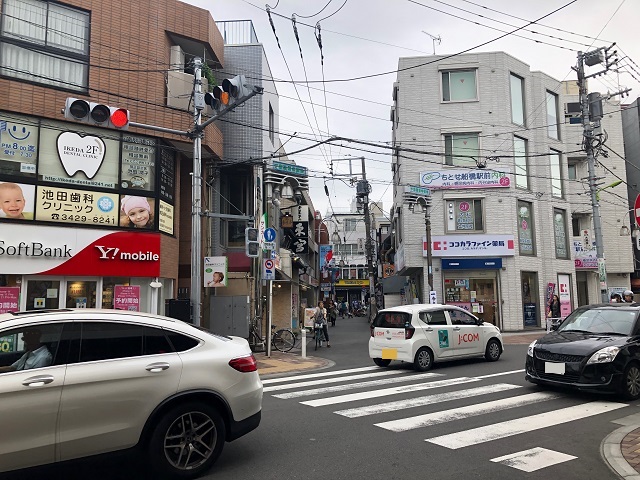 ① 「千歳船橋駅」南口を出て左へ、横断歩道を渡り、右手にある路地を直進します。