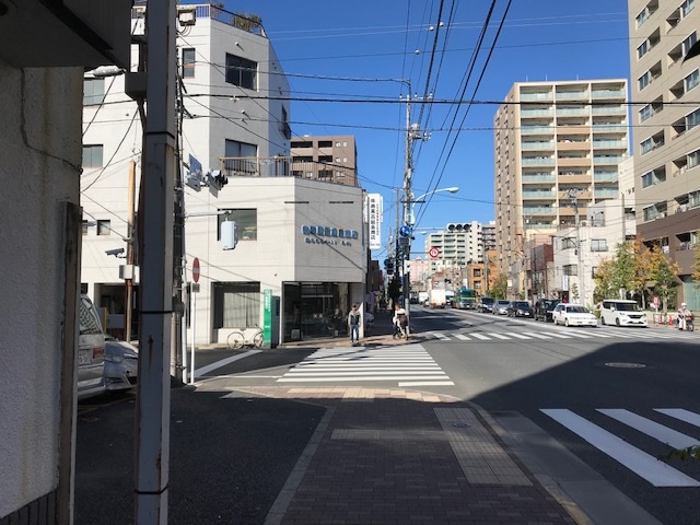 ① 「菊川駅」A3出口を出て右へ進み、「菊川2丁目交差点」を左へ渡り右折します。