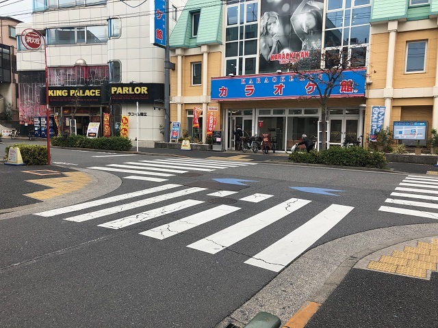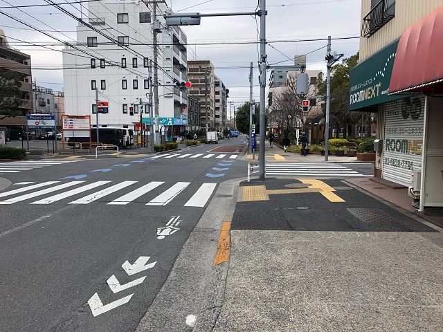 ② 突き当りの横断歩道を渡り、左へ進みます。