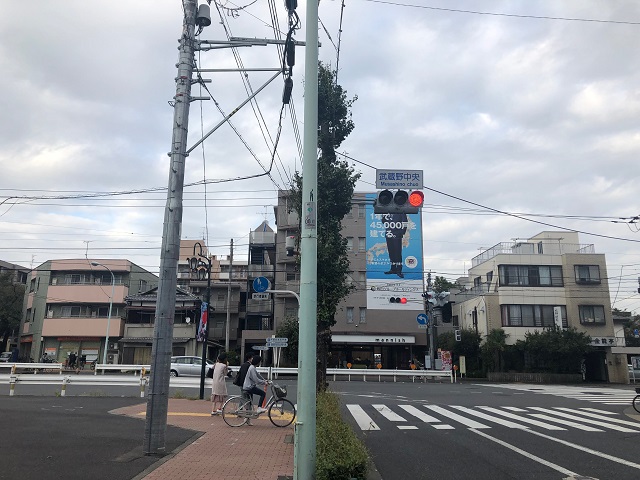 ② 1km程先の「武蔵野中央交差点」を左折、すぐの路地を右折します。