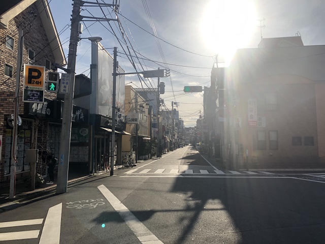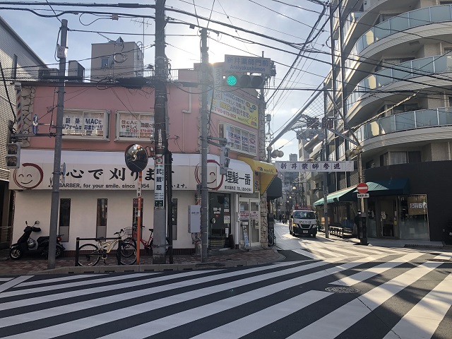 ① 「新井薬師前駅」南口を出て、突き当りを左へ進みます。