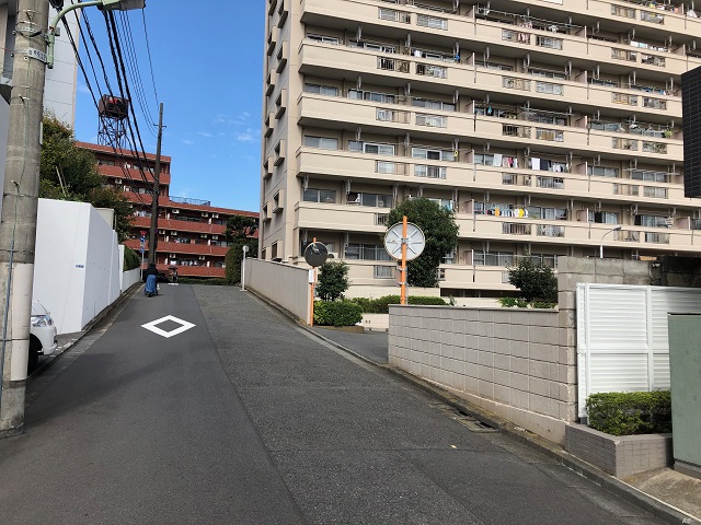① 「石川台駅」五反田方面出口を出て左に曲がります。