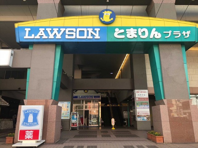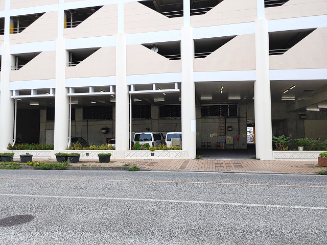 ① とまりんプラザ(国道58号線側)から泊ふ頭入口交差点方向へ約50m進みます。
