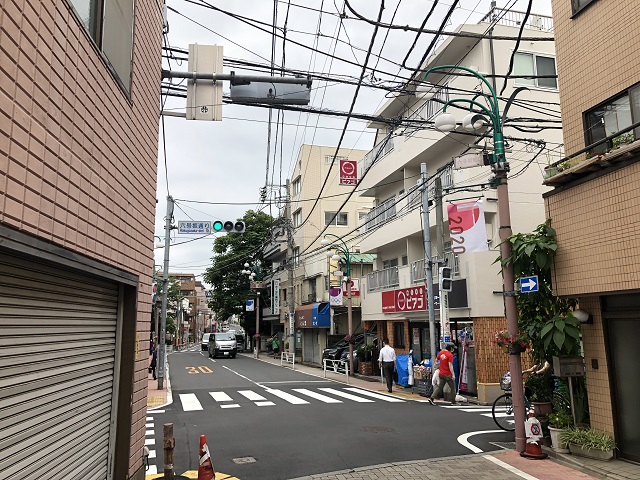 ① 「幡ヶ谷駅」北口を出て左へ進み、120m先を左折します。約500m直進し、交差点を右折します。