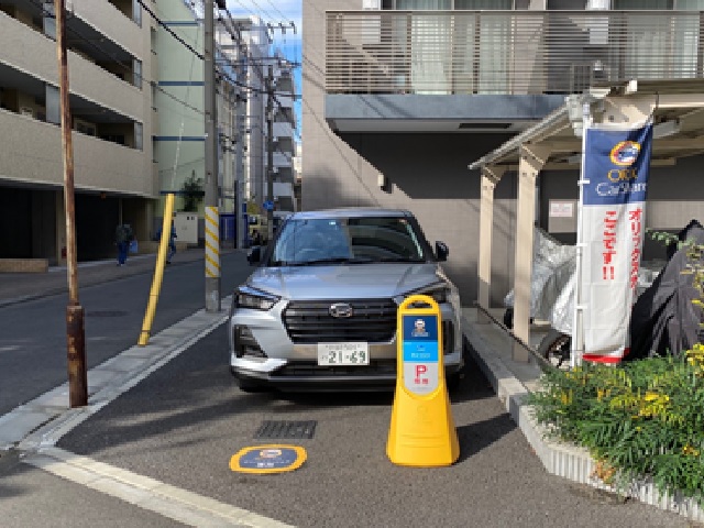 ⑤ しばらく進んだ交差点手前にある左側のマンション駐車場にステーションがございます。 |
