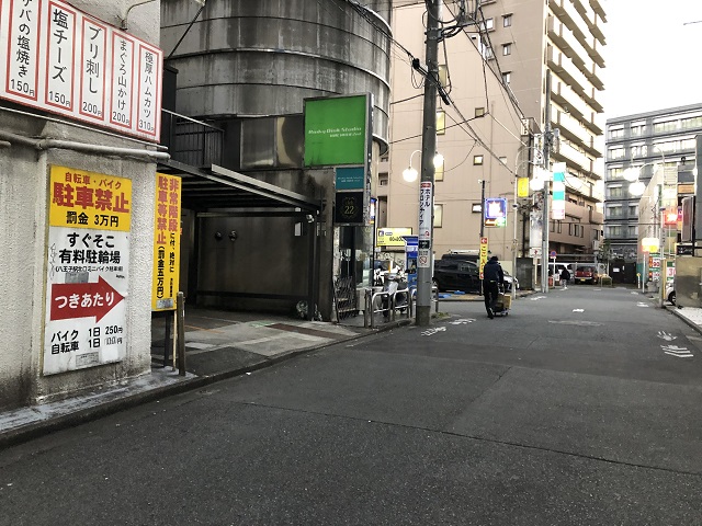 ① 「八王子駅」北口を出てバスロータリーを左へ進み、信号を左折します。