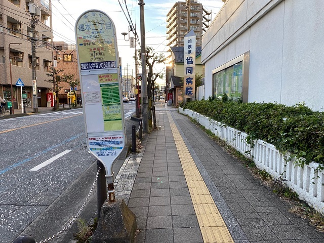 ② 「橋本駅二丁目」バス停の先の交差点を右折します。