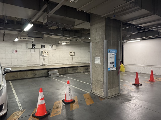 ⑤ 荷捌所の階段を下りて、右斜め前の駐車枠を直進します。 |