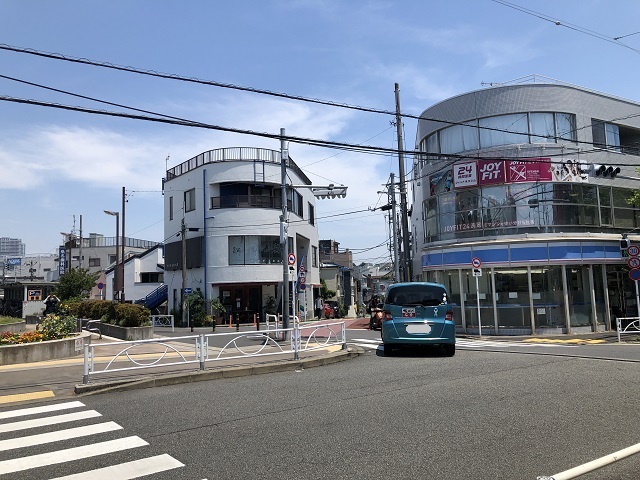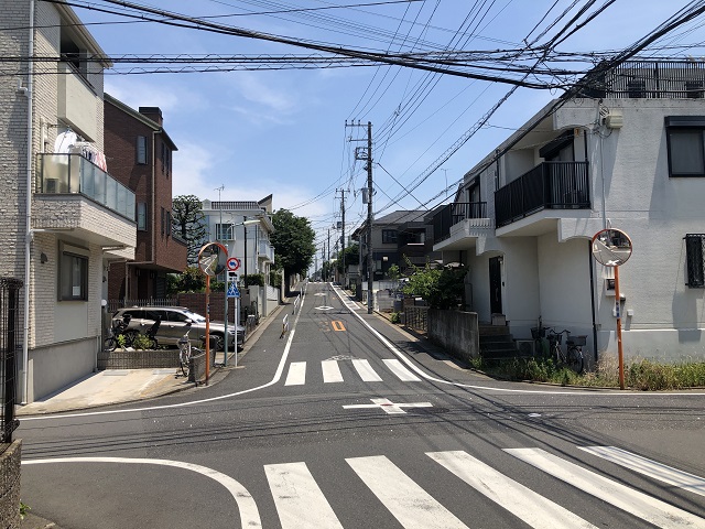 ① 「洗足駅」の改札を出て横断歩道を渡り、右斜め前方向へ進みます。