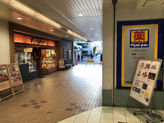 ② 草加VARIE(ヴァリエ)内を抜けて、右折します。