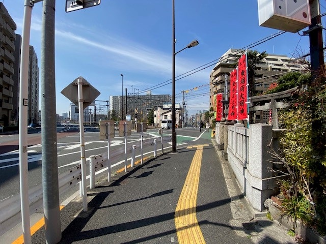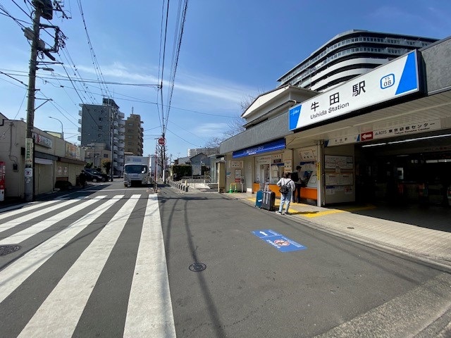 ① 「牛田駅」を出て右側に進みます。