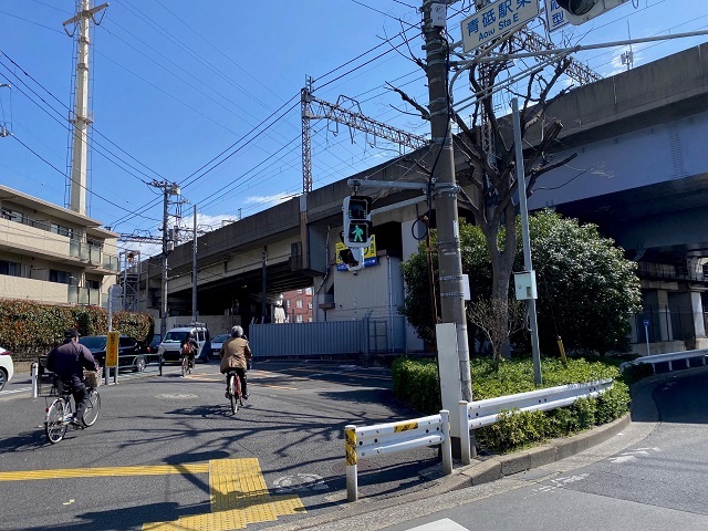 ④ 「青砥駅東交差点」の横断歩道を右に進みます。 |