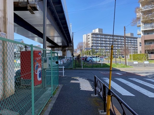 ② 右に進み、高架下に沿って左に進みます。 |