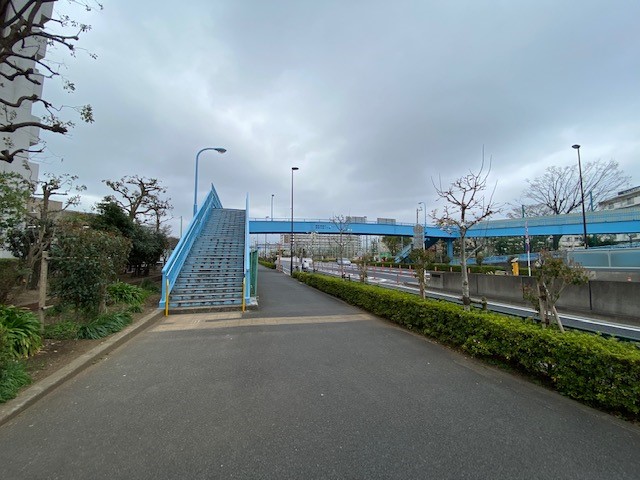 ④ 歩道橋を上り、右に進み蔵前橋通りを越えて、左側の階段を降ります。 |