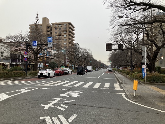 ① 「国立駅」南口を出て、正面の大通りを150m直進します。