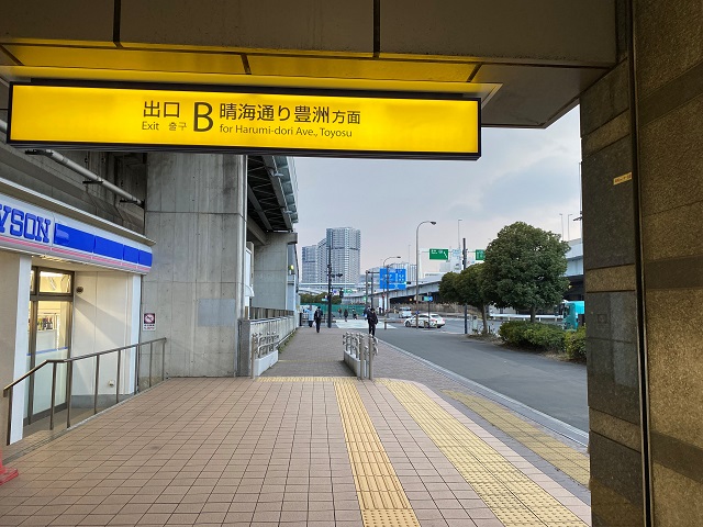 ① 「東雲駅」出口Bを出て、まっすぐ進みます。 |