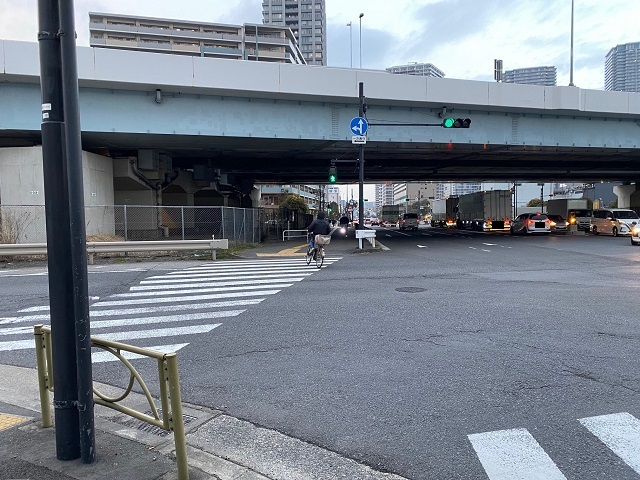 ③ 更に右側の横断歩道を渡り、首都高速道路下へ進みます。 |