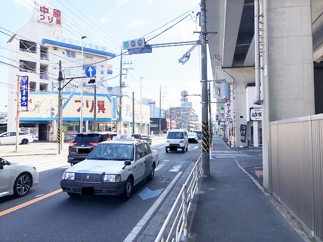 ① 「武蔵中原駅」改札を出て左へ曲がり、南武沿線道路を川崎方面へ直進します。