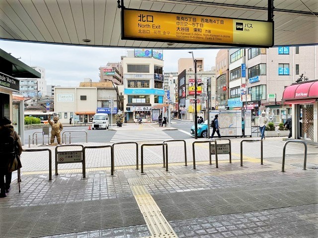 ① 「亀有駅」北口を出ます。