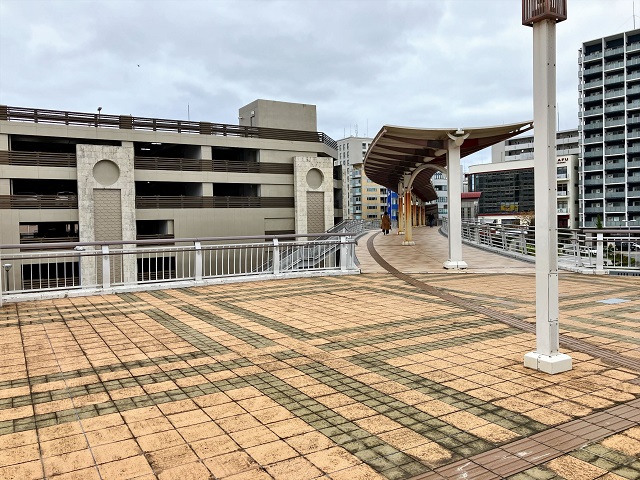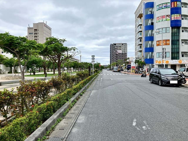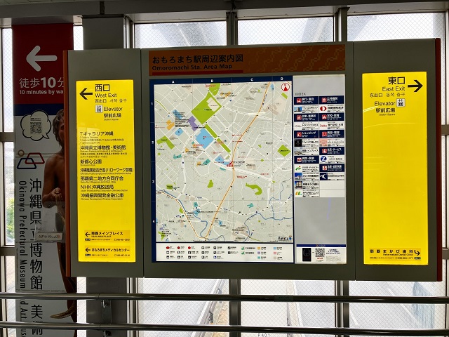 ① ゆいレール「おもろまち駅」改札を出て左側、西口の階段を下ります。