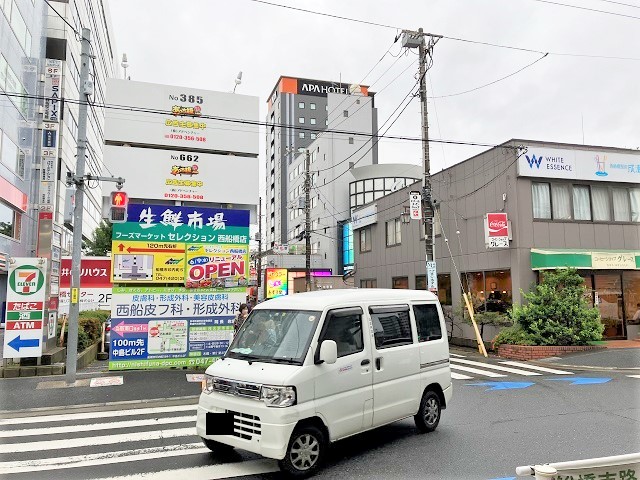 ① 「西船橋駅」南口を出て、横断歩道を渡り直進します。