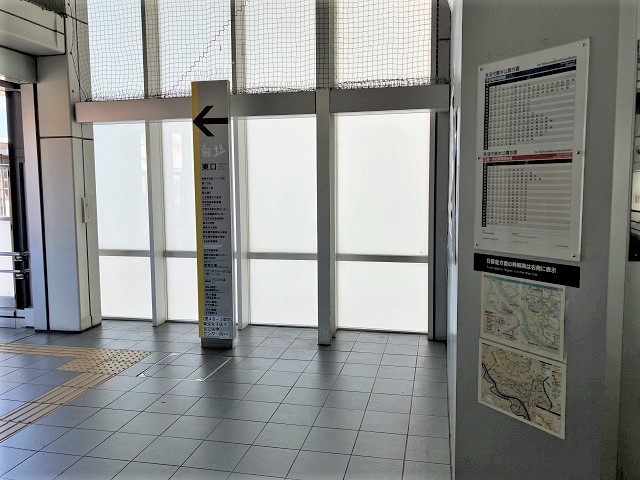 ① 「江北駅」改札を出て、東口へ進みます。