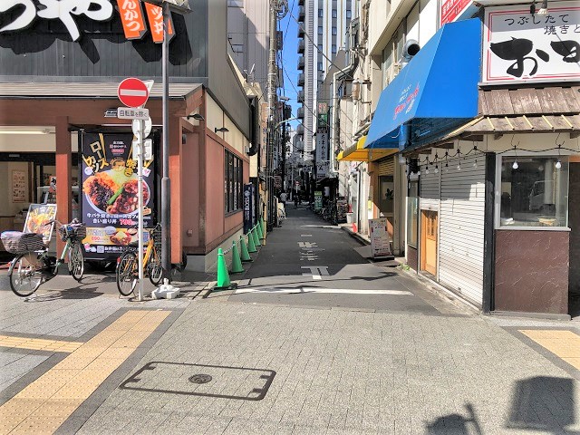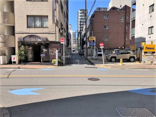 ② 突き当りを右へ曲がり、すぐ左の一方通行出口を入ります。
