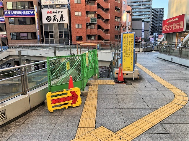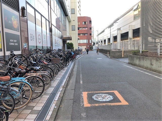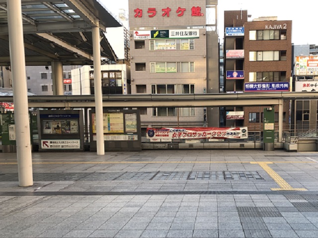 ③ モアーズ前の階段を下り、駅側へ向かいます。
