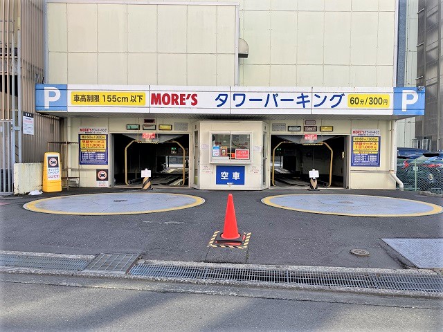 ⑤ 50m先を左に曲がると、有人の機械式タワー駐車場がございます。