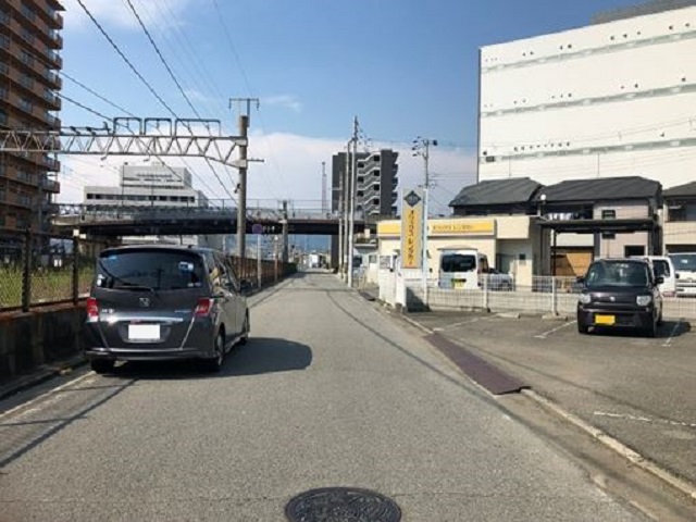 ③ 線路沿いを200mほど直進すると、右手にオリックスレンタカーの店舗が見えます。